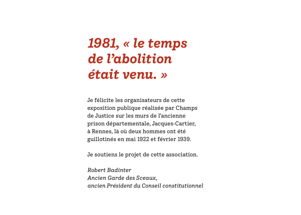40 ans d’abolition de la peine de mort, sous le parrainage de Robert Badinter.