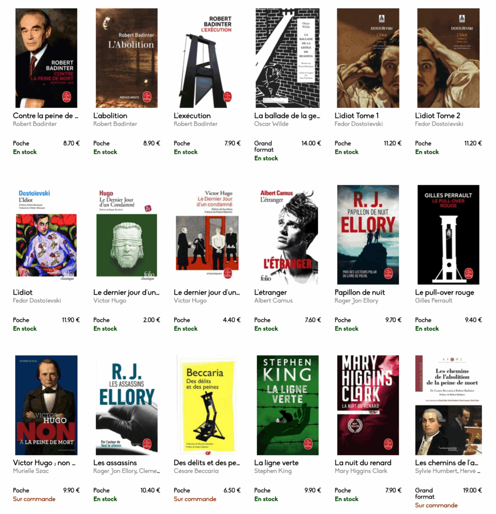 Sélection de livres sur la peine de mort, disponibles à la librairie Le Failler