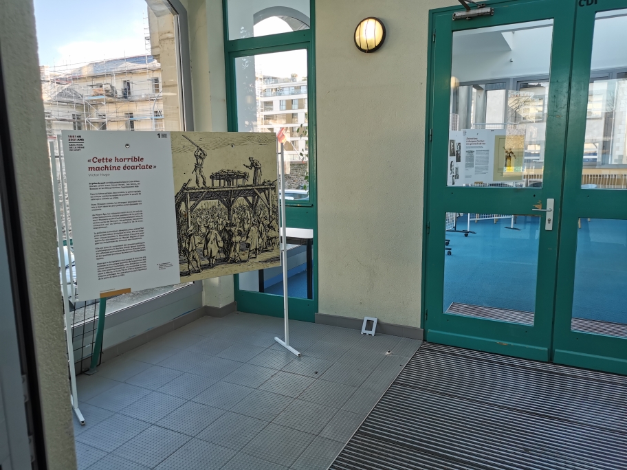 Nous avons trouvé que l’exposition était très intéressante. Nous avons aimé le fait qu’il y ai des affiches portées sur Rennes. Nous avons pu prendre connaissance des dates comme par exemple la prison jaques cartier qui a fermé en 2021 et l’abolition de la peine de mort en 2007. Nous ne pensions que c’était aussi proche de nous.