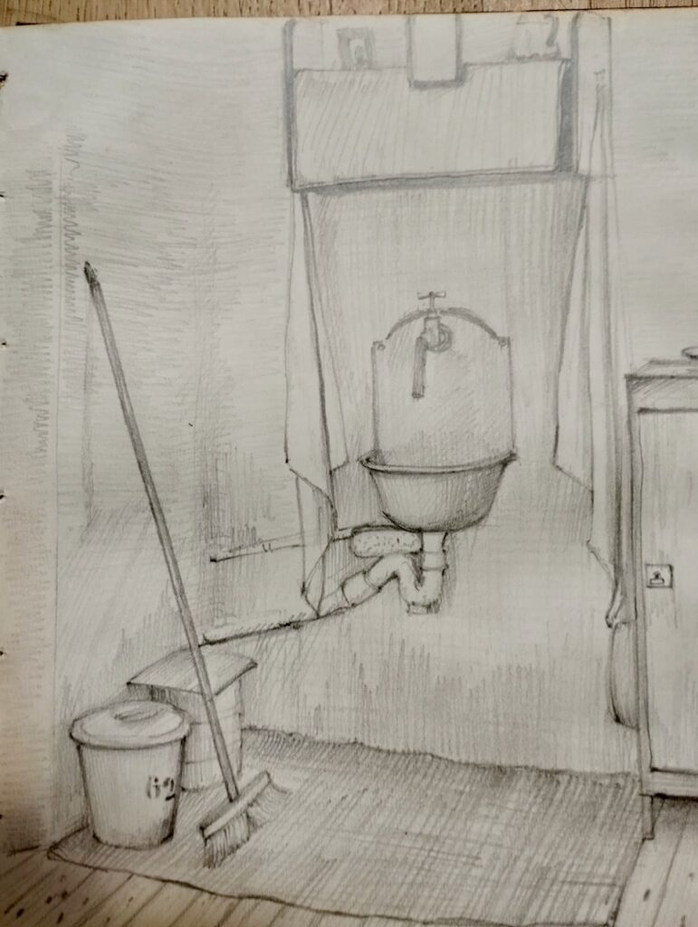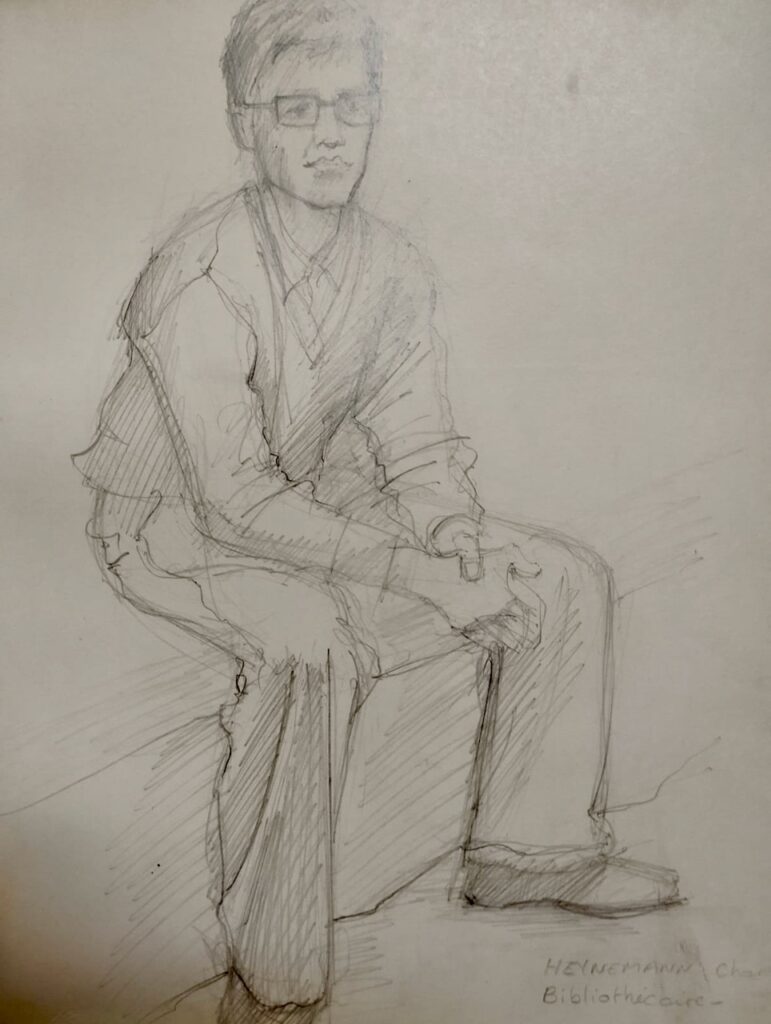 Ma famille était témoin de Jéhovah et les jeunes adeptes refusaient le service militaire. Au moment de ma condamnation la peine encourue était de trois ans mais au cours de ma détention elle a été ramenée à deux ans. Le paradoxe, c’est que pendant cette période , mes nombreuses lectures m’ont éloigné de cette organisation sectaire que j’ai quitté après ma sortie. J’ai été affecté au poste de relieur, ce qui me permettait d’être seul en cellule et de pouvoir circuler dans l’enceinte de la prison. J’ai réalisé quelques dessins de mon espace étroit, tel qu’il était à l’époque, ainsi que quelques portraits d’autres détenus que je croisais. Libres comme moi de circuler, ils venaient poser pendant quelques minutes.
