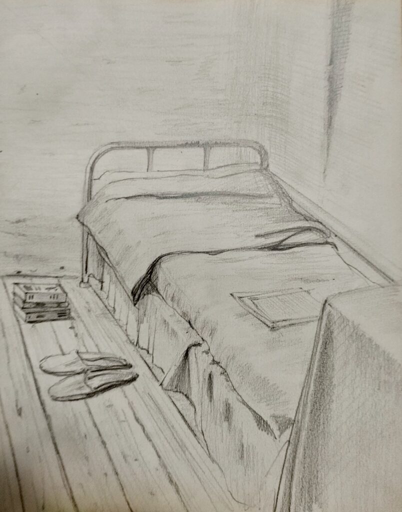 L’infirmière m’avait demandé de faire le portrait de sa fille à partir d’une photo. Elle me faisait cadeau régulièrement de café moulu, ce qui changeait de l’orge grillée distribuée le matin. J’échangeais parfois des dessins avec des gardiens qui achetaient pour moi à l’extérieur des livres de philosophie ou de poésie.